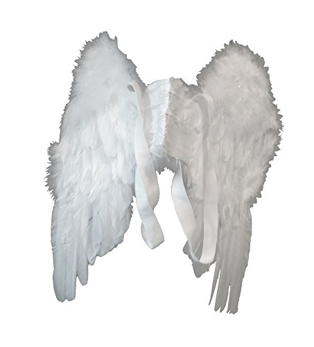 Get angelic this year with these gorgeous shimmering white feather wings. Attaches via elastic bands around the shoulders. Great for Halloween, concerts, and Christmas pageants! Sized to fit most children and adults.