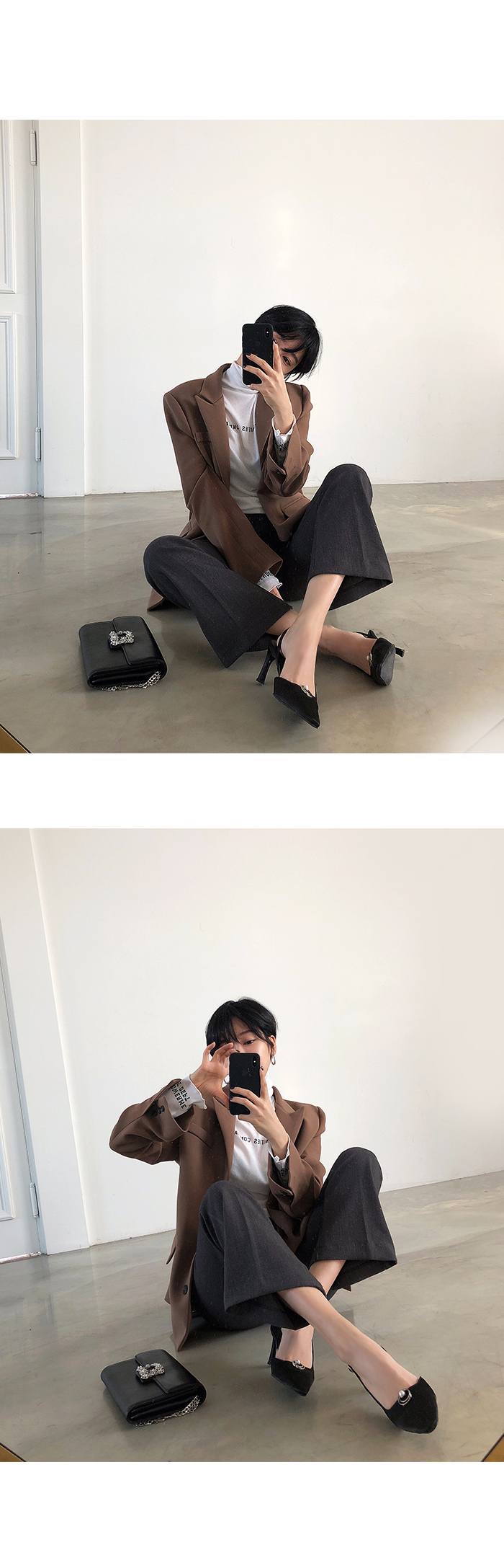 은은한 광택감이 베어져 나와 포멀하게 또는 캐쥬얼하게 다양한 포밍이 가능합니다.