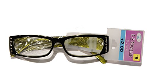 -. Binding : Health and Beauty -. Brand : E-Z Reader -. Color : black and green -. EAN : 0031568633720 -. Feature : +2.00 magnification reader glasses / green and black with bling / new in unopened package -. Label : fostergrant -. Manufacturer : fostergrant -. MPN : 340 -. PackageQuantity : 1 -. PartNumber : 340 -. ProductGroup : Health and Beauty -. ProductTypeName : HEALTH_PERSONAL_CARE -. Publisher : fostergrant -. Studio : fostergrant -. Title : E-Z Reader Glasses Black and Green Bling +2.00 Hook 15 Maxine -. UPC : 031568633720