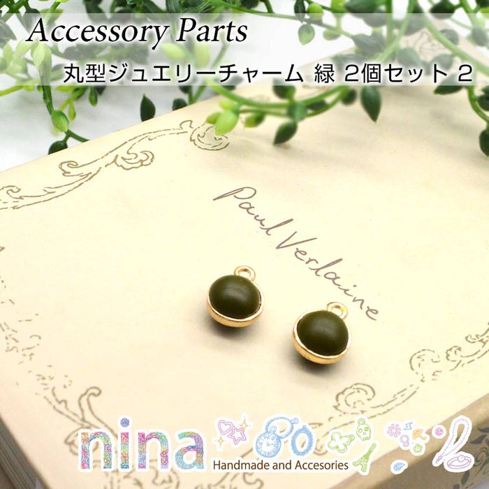 ■商品名:丸型ジュエリーチャーム 緑 2個セット
