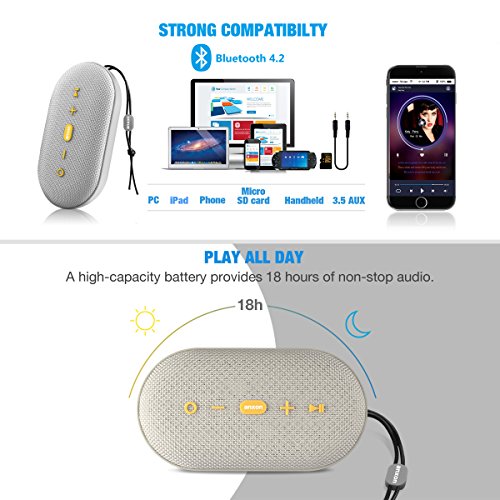 -. Title : Wireless Bluetooth Speakers,Anxon Portable 18W Waterproof Shower Speaker Bluetooth 4.2 Indoor &Outdoor Water Resistant IPX5,18 Hours Playtime,TF Card Support,Built-in Mic for Sport,Beach,Pool,Camping