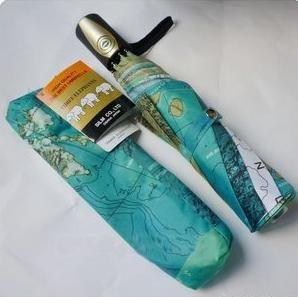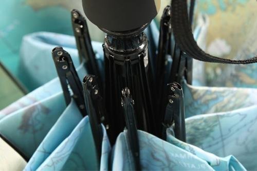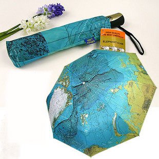 -. Title : 世界地図の柄 きれいな ブルーの ワンタッチ 折りたたみ傘 晴雨兼用