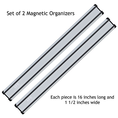 Magnetic Knife Holder and Home Organization Tool Strip (Set of 2), 16 Inch Bar, Free Organizer eBook