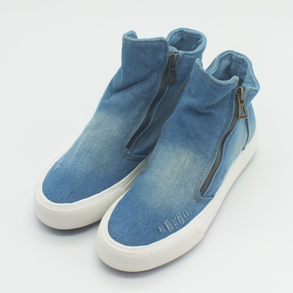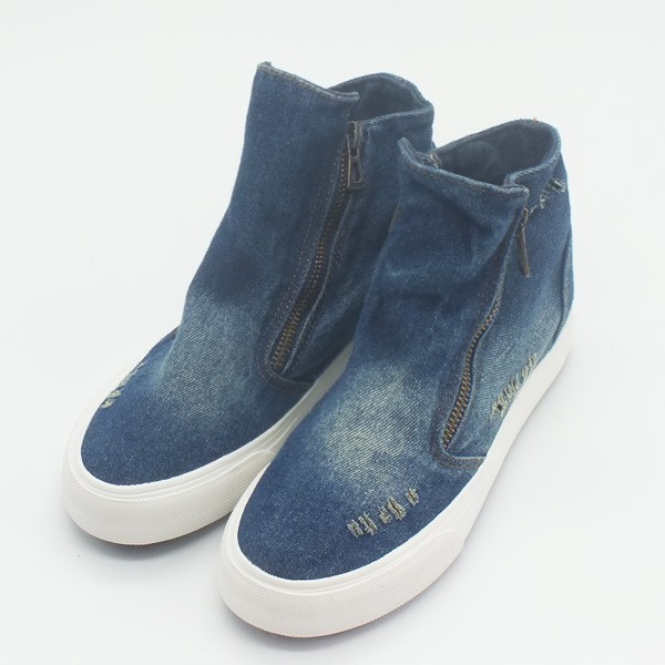 | 商品説明 | 厚底 ヴィンテージ デニム ハイカット スリッポン♪ デニムのダメージ感がカジュアルな厚底シューズです。 シーズンレスなデニム素材はコーデのマストアイテム♪ |