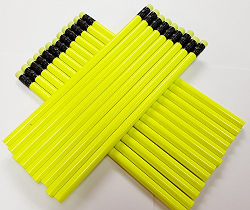 100 Count Neon Yellow Pencils with Yellow Erasers No. 2 Black Lead