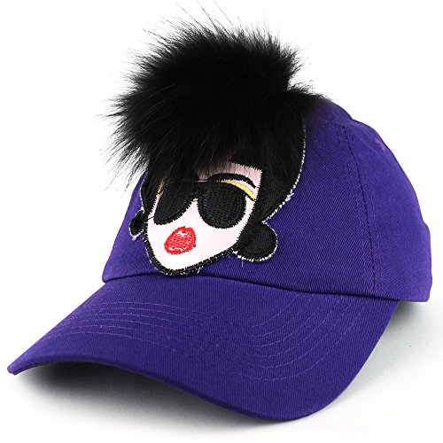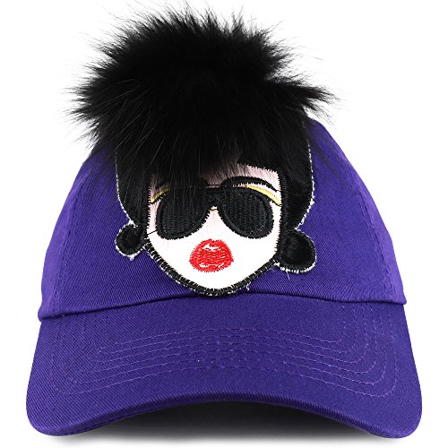 (Trendy Apparel Shop)/Accessories/Hats/DIRECT FROM USA/Trendy Apparel Shop Fur Hair Sunglasses Lady Embroidered Patched Unstructured Baseball Cap