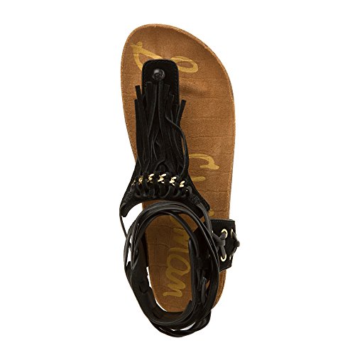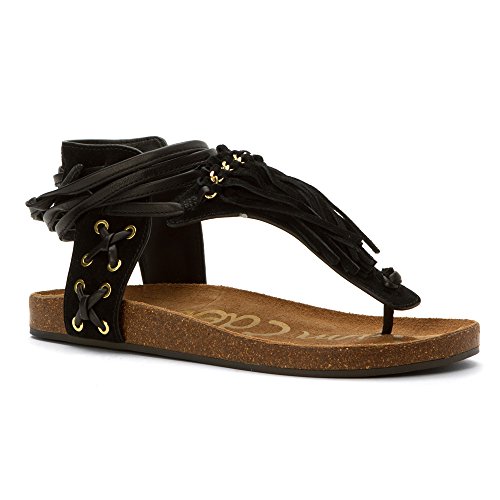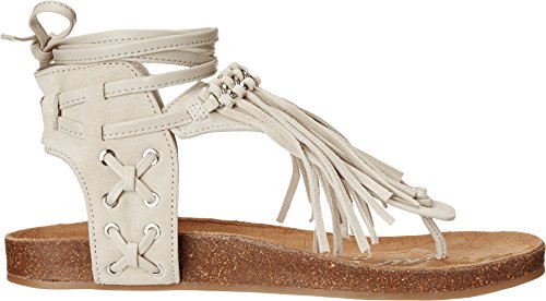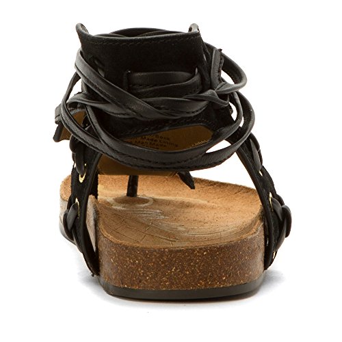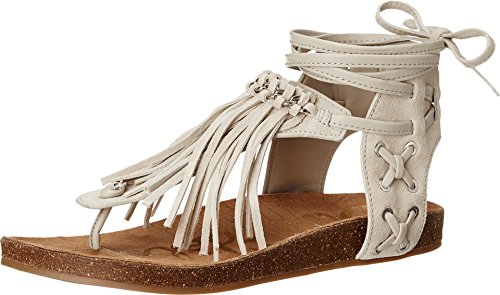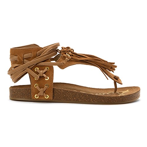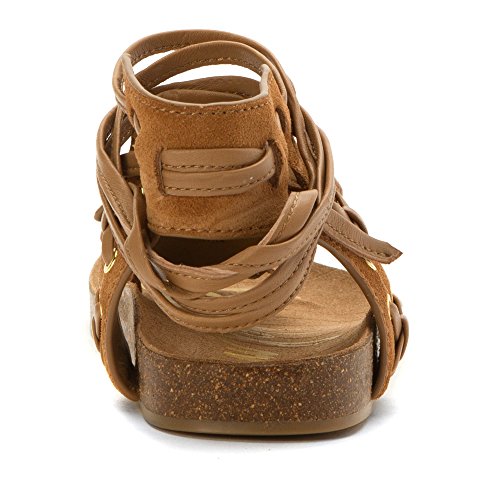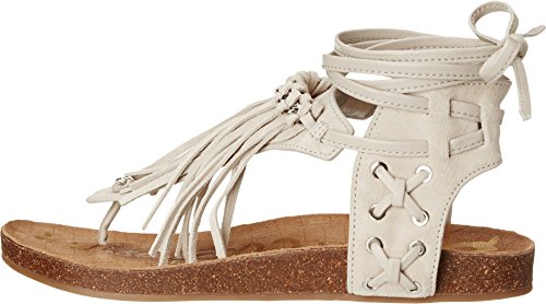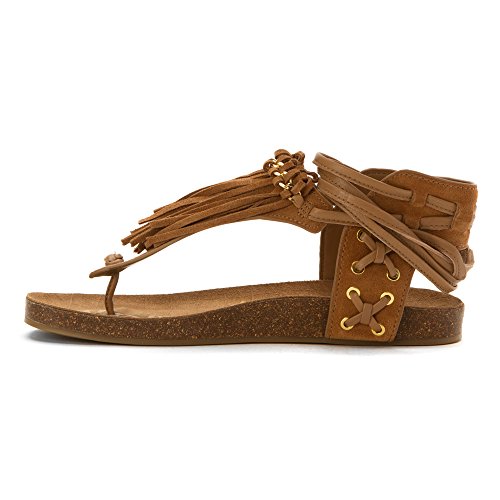 Cork-platform sandal featuring fringe-topped thong vamp and lace-up ankle wrap