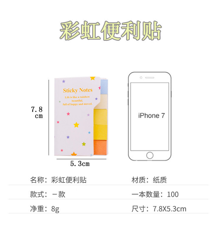 小清新日韩国创意清新可爱便利贴彩虹色双面便签本双色N次贴
