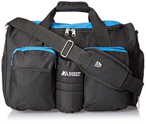 -. Binding : Apparel -. Brand : Everest -. Department : unisex-adult -. Feature : A sports duffel with a special side pocket for shoes or wet gear / Extra spacious compartment with zippered clamshell opening / Two front zippered pouches with mesh pockets and bottle holder / Adjustable padded shoulder strap and hook and loop fastener close handles / 18x10.5x11.5 / A sports duffel bag with extra space / -Includes a side pocket that could be used for shoes or wet gear / -Two front zippered pouches / -Adjustable padded shoulder strap / -Includes a bottle holder -. Label : Everest Lage -Child Vendor Code -. Manufacturer : Everest Lage -Child Vendor Code -. Model : S223 -. NumberOfItems : 1 -. PackageQuantity : 1 -. ProductGroup : Apparel -. ProductTypeName : LAGE -. Publisher : Everest Lage -Child Vendor Code -. Size : One Size -. Studio : Everest Lage -Child Vendor Code -. Title : Everest Gym Bag with Wet Pocket