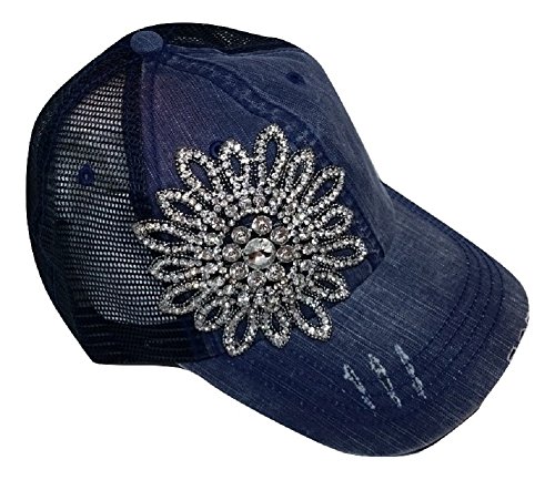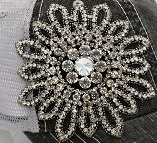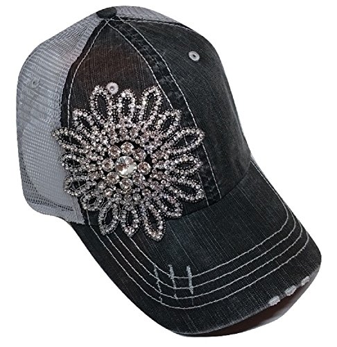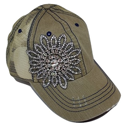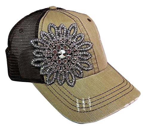 Olive Pique Women's Stitch Rhinestone Flower Trucker Cap