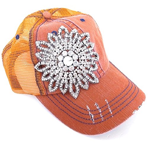 Product DescriptionOlive Pique mesh back trucker style cap with large floral embellishment.0