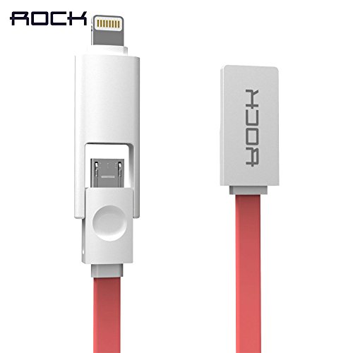 -. Title : Rock cable 1000MM Charger Cable 2 in 1 Micro USB Data Cable For Android System Phone Or Iphone 5/6 MT-3267 (RED)