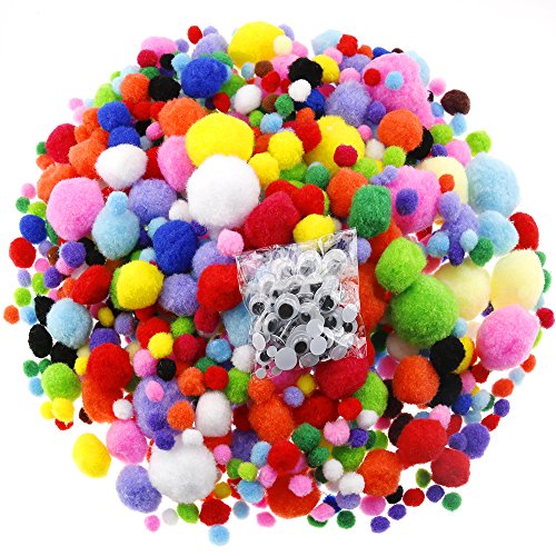 - Valuable Set: 1300 pieces 5 sizes multicolor pom poms, 100 pieces 4 sizes googly eyes; Assorted colors and sizes can fit various kinds of decorations