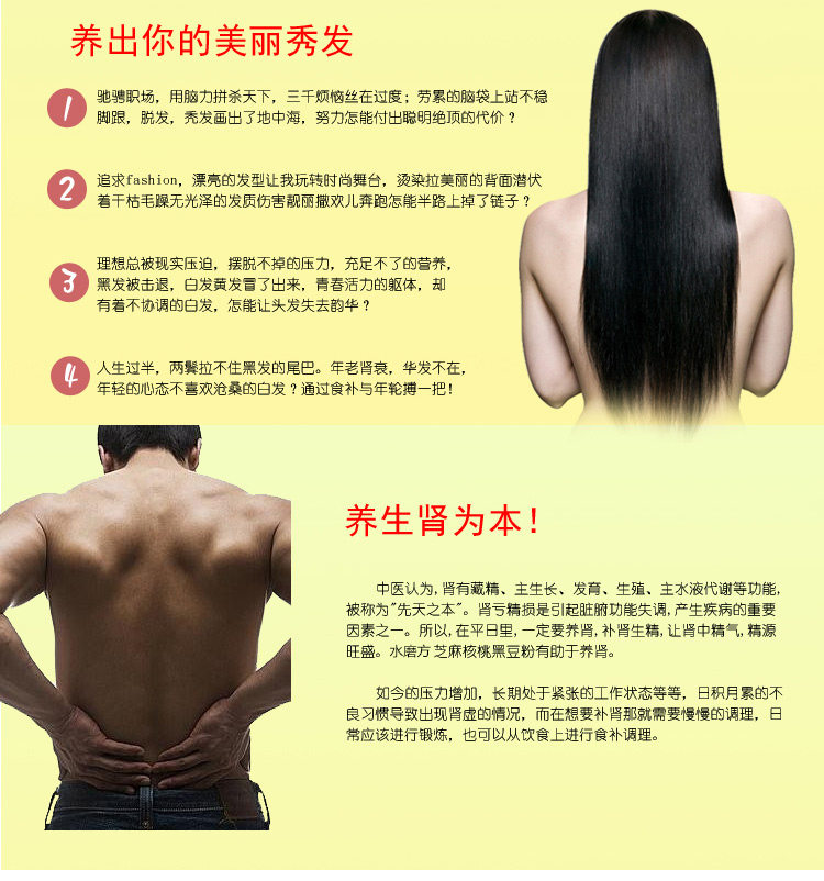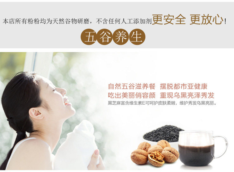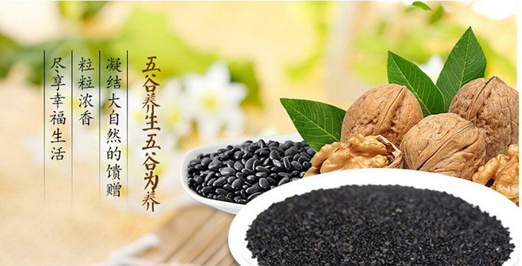 This is a 5 grains healthy beverage with Black Sesame, Walnut, Black Rice, Black Bean and Polygoni Multiflori grinded into powder