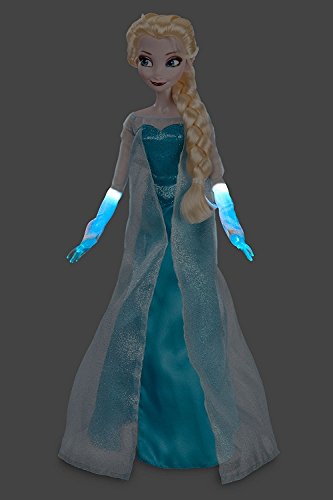 -. Binding : Toy -. Brand : Disney -. Color : Blue, Yellow -. EAN : 0640213869782 -. Feature : Elsa sings Let It Go when motion activated by waving in front of her -. IsAdultProduct : 0 -. Label : Disney -. LegalDisclaimer : Disney Store Authentic Product. Buy with confidence. -. Manufacturer : Disney -. Model : B00GGWOY0I -. MPN : 2 -. PackageQuantity : 1 -. PartNumber : 2 -. ProductGroup : Toy -. ProductTypeName : TOYS_AND_GAMES -. Publisher : Disney -. Size : 16" H -. Studio : Disney -. Title : Disney Frozen Exclusive 16 Inch Singing Doll Elsa -. UPC : 411047408603