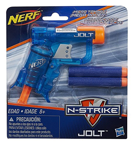 -. Feature : Jolt blaster packs a powerful punch / Small enough to hide it in your pocket / Comes with 2 Elite Darts / Cocking handle readies your shot / Blaster comes with 2 Elite Darts