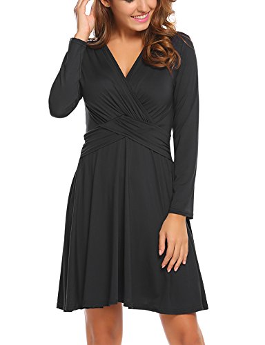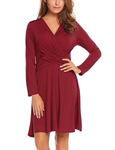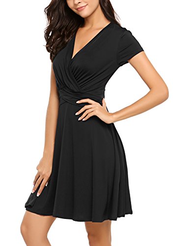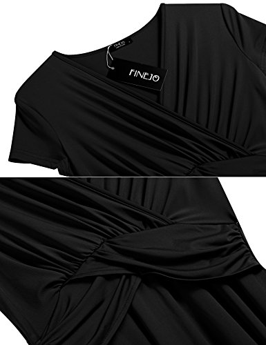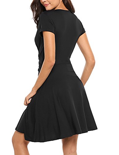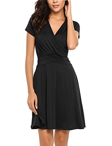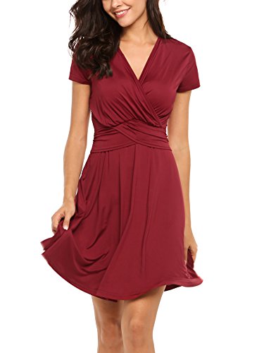 Finejo Women's V-Neck Short Sleeve Ruched Waist Cocktail Swing Party Dress A feminine drape and elevated style easily take you from desk to dinner.