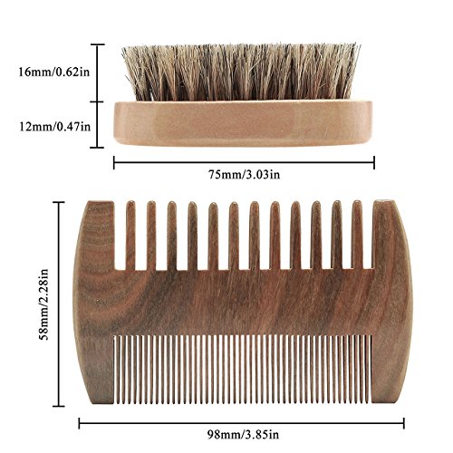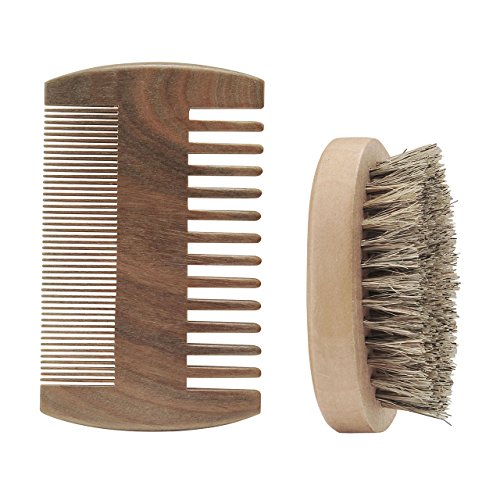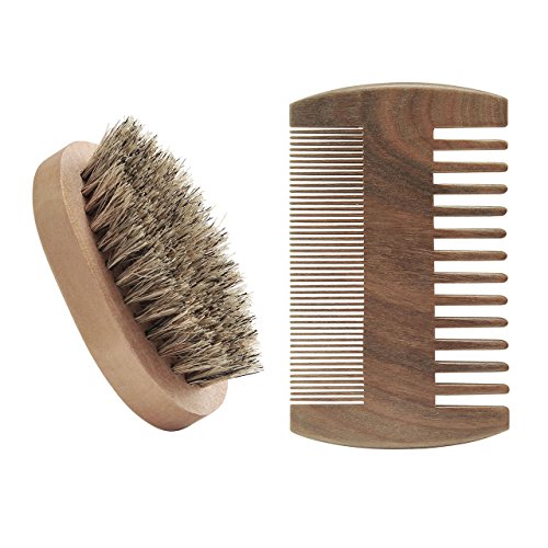 CCbeauty Boar Bristle Beard Brush and Comb Set Natural Sandalwood Beard Comb Bamboo Mustache Brush Facial Beard Styling Grooming Kit for Men