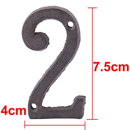 Studio : uxcell Publisher : uxcell Product Description The color of these numbers is chocolate color. Made of cast iron material,easy to install on the wall and rust resistant to keep it a long life. New modern design, easy to read and recognize. Can be used as house, hotel number plate, door number or as numeric digit for other buildings. Available number shaped are:0, 1, 2, 3, 4, 5, 6, 7, 8, 9, Shape # 1, Shape # 2 Notes: 1. Due to the light and screen differences, the color of item may be slightly different from the pictures. Please understand. Make sure you do not mind before you bid. 2. Please allow 1-2cm differences due to manual measurement. 0