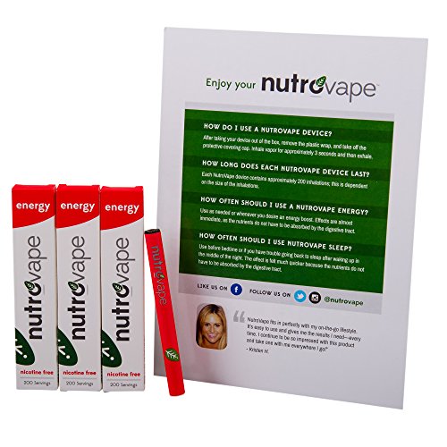 Inhalable Energy Aid | 200 Inhalations - Works Fast - Caffeine - Taurine - Tastes Great - 60-Day Money-Back Guarantee | Energy Drink Alternative by NutroVape | Now With Longer Lasting Battery (1)