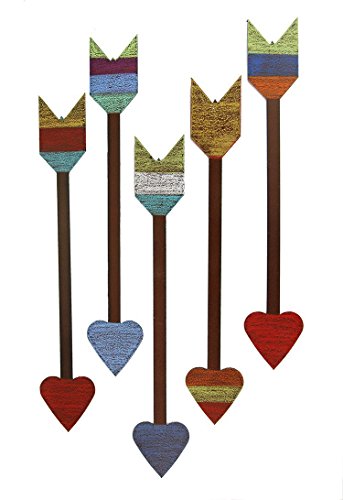 12" Metal Heart Arrow In Red, Turquoise And Gold, Hanger