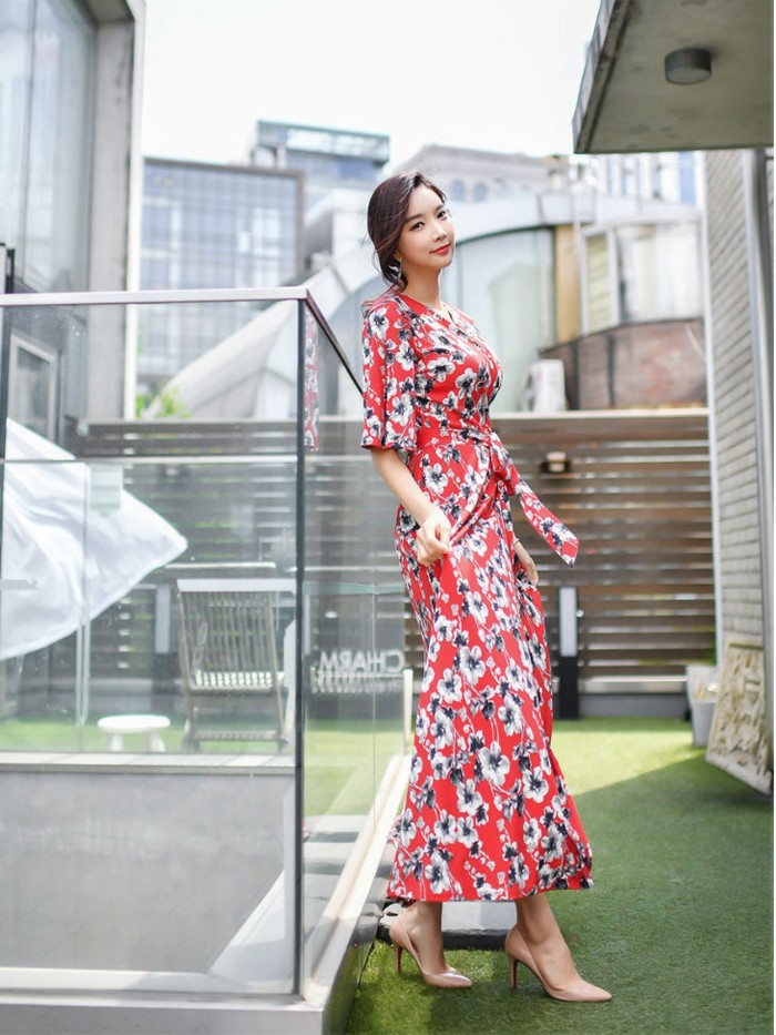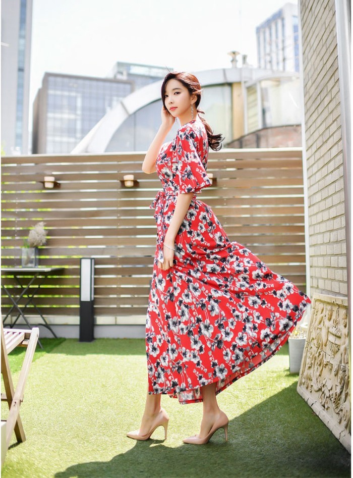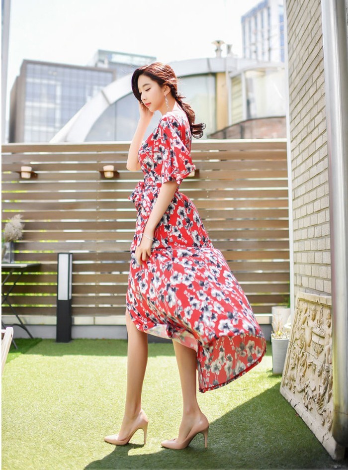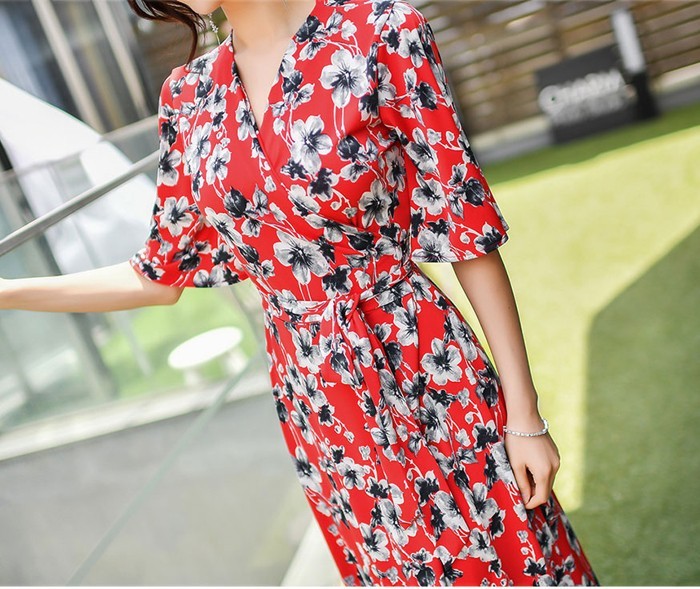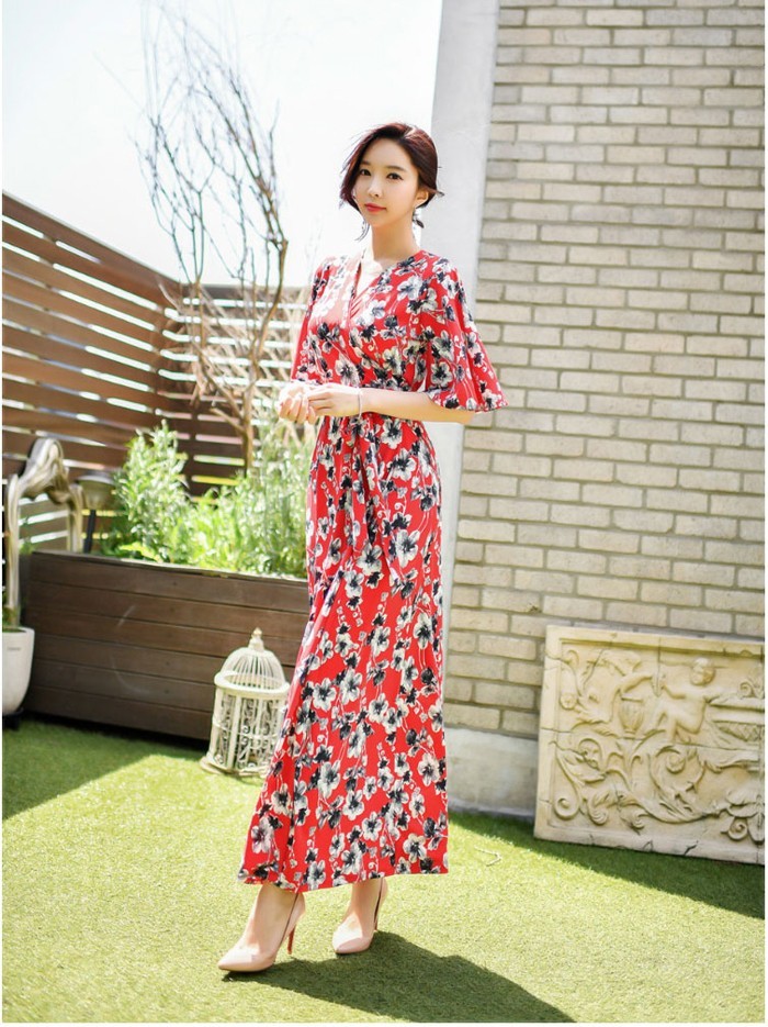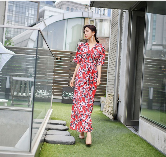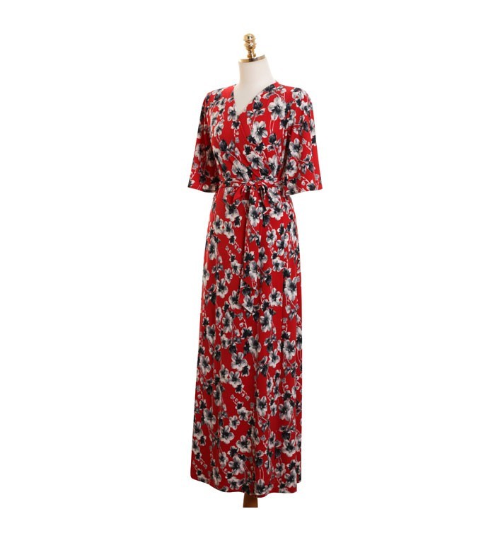商品名:ワンピース ロング丈 フラワー 花柄 半袖