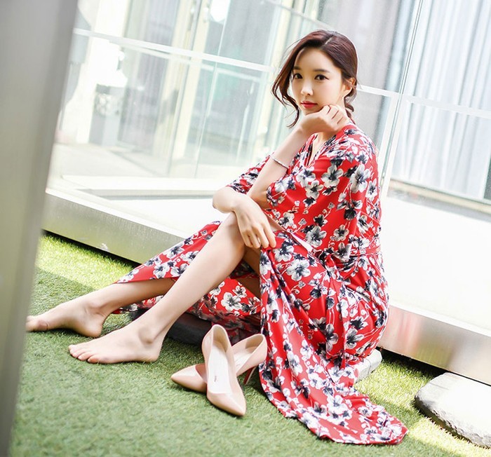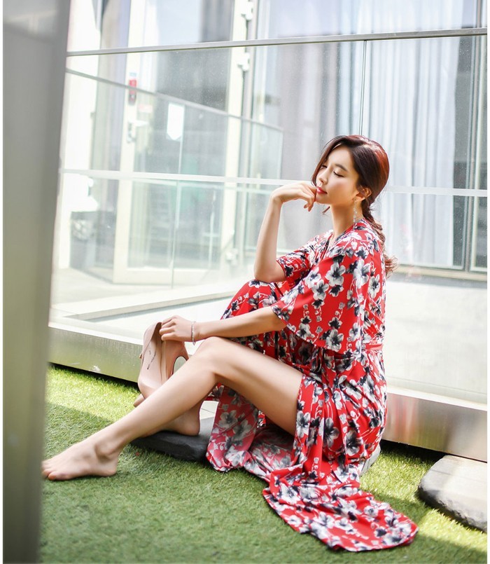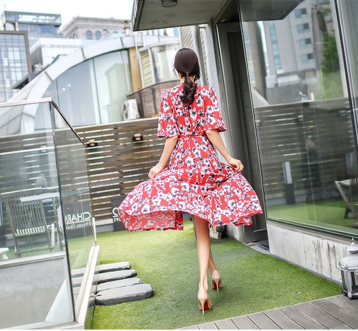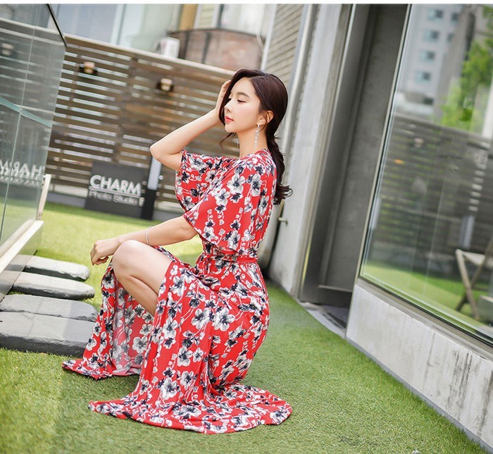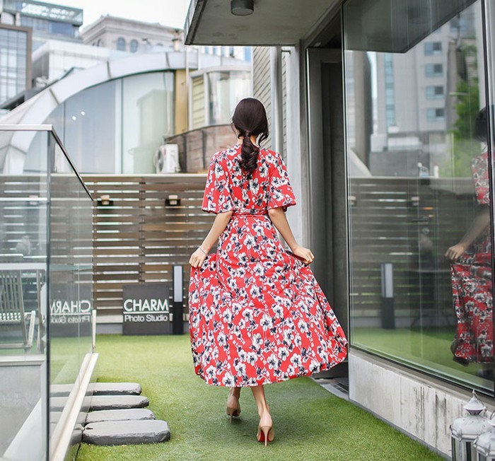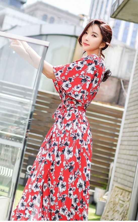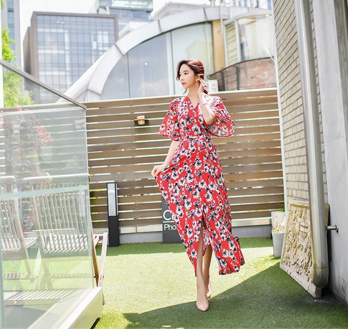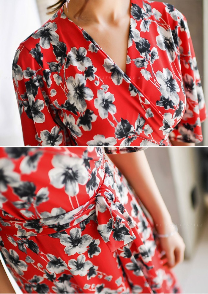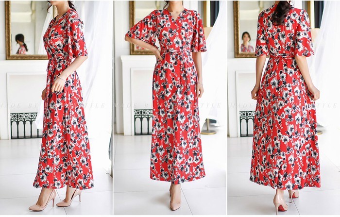 商品名:ワンピース ロング丈 フラワー 花柄 半袖
