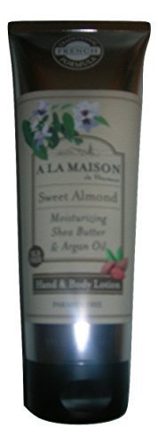 A La Maison de Provence Sweet Almond Moisturizing Shea Butter and Argan Oil Hand and Body Lotion - 8.0 Ounces Traditional French Formula enriched with Argan Oil and Pure Shea Butter. Brand : A La Maison MPN(PartNumber) : na EAN : 0817252011667 Product Dimensions(LxWxH) : 18x6x6cm ; 272 g Package Dimensions(LxWxH) : 18x6x6cm ; 272 g