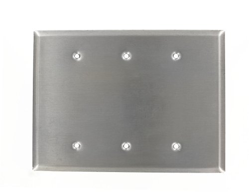 Leviton 84133-40 3-Gang No Device Blank Wallplate, Oversized, Box Mount, Stainless Steel