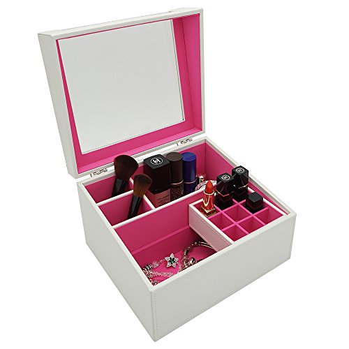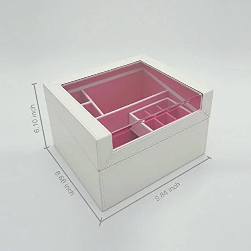 -. Feature : Exquisite Craft -- Made of faux leather and lining,With MDF box frame, Size: 9.84"LX8.66"WX6.10"H(25XX22X15.5CM) ,Weight: 3.28lb / Rational layout -- Multi-size compartments, The Box had compartments of various sizes and shapes to keep Skin care products(The inner High is 5.5"),lipstick,daily jewelry / Large storage space -- Provide sufficient storage space for Beauty case with Cosmetics,lipstick,necklaces, bracelets, earrings, ear studs, hairpins, cufflinks, brooches and other jewelry / Classic Design -- Unique Display Window that show front part of the inside. / Multiple function -- This makes a great gift for mother, girlfriend,wife, daughter, colleague,friend or any other special woman in your life.