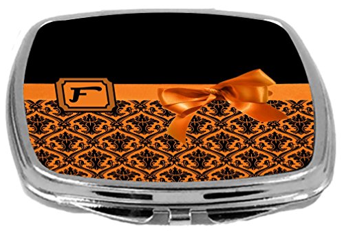 Rikki Knight Letter-F Monogram Damask Bow Design Compact Mirror, Orange, 2 Ounce