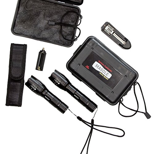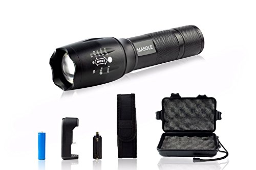 Masole XML T6 Ultra Bright LED Tactical Flashlight, 1000 Lumen with Rechargeable 18650 Lithium Ion Battery, 5 Modes Zoomable Adjustable, Water Resistant for Hiking, Camping