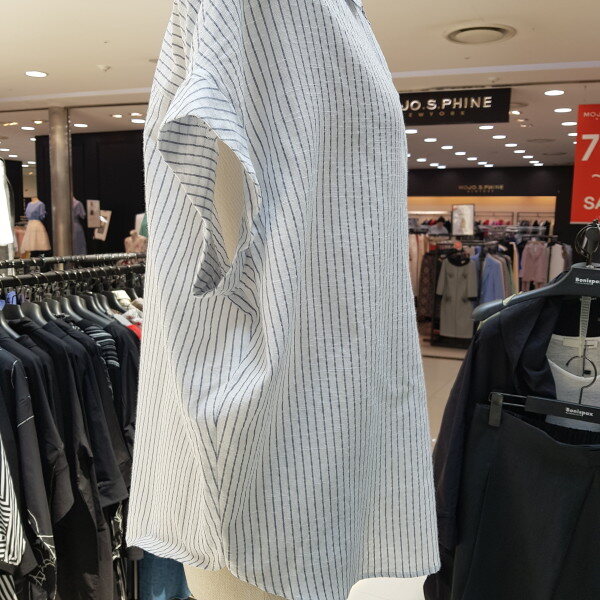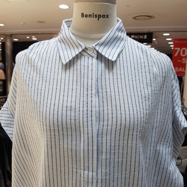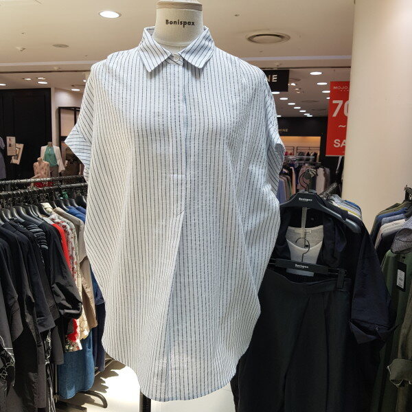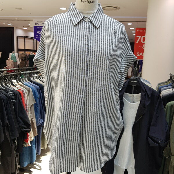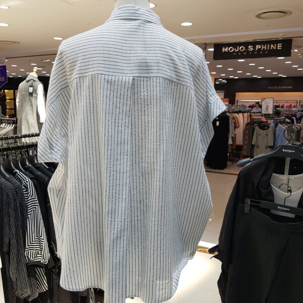 루즈핏스탈의 스트라이프 무늬가 들어간 멋스런 셔츠입니다.허리라인에 셔링이 살짝디자인된 시원해 보이는 린넨셔츠랍니다.