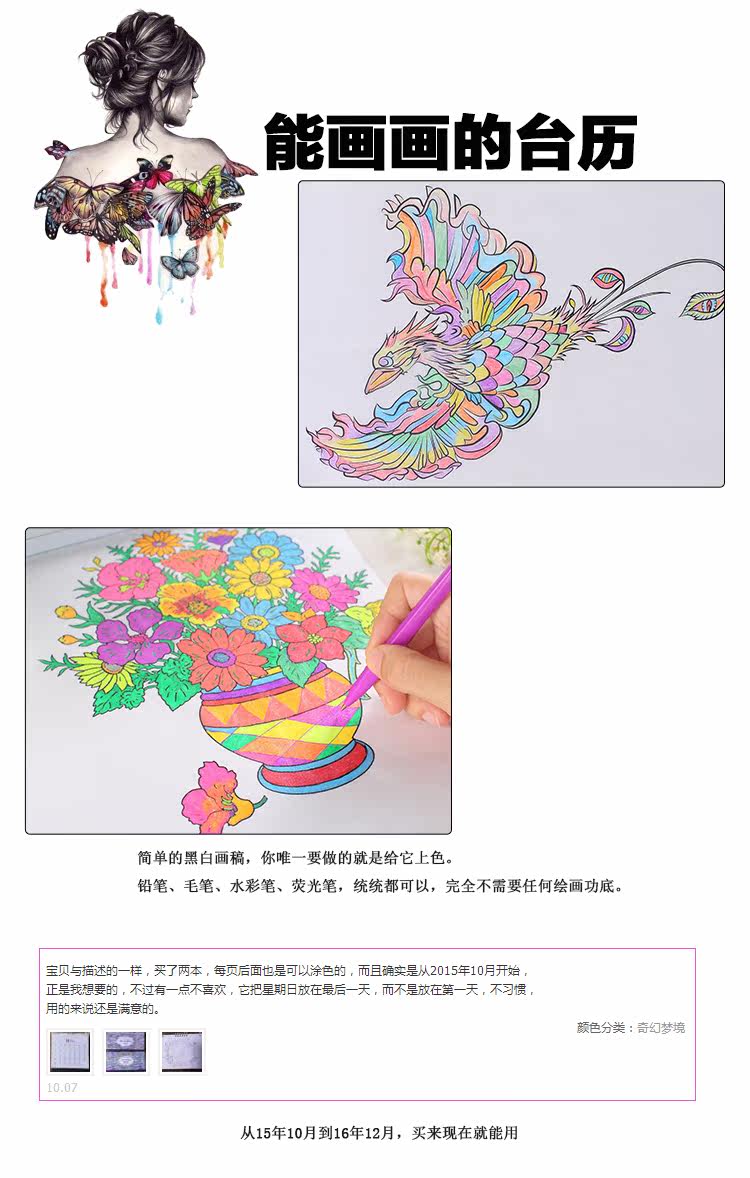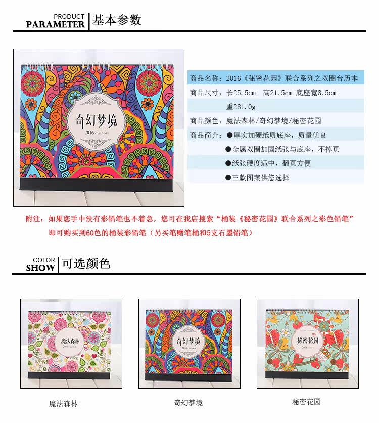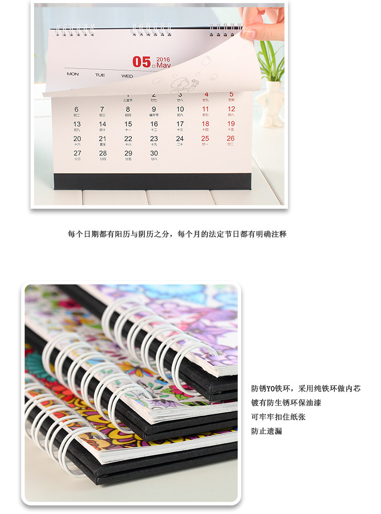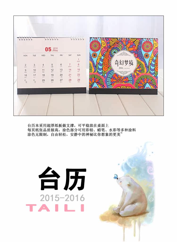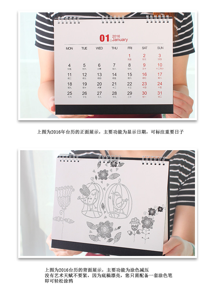 韩版2016年大台历可填色 DIY记事本工作学习计划本日程日历带农历
