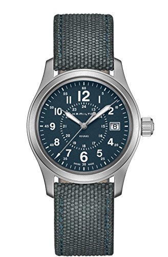 Studio : Hamilton Publisher : Hamilton Binding : Watch Product Description Rugged and edgy the Khaki Field line of watches is perfect for adventurous, active, outdoor men. Each piece in the line has bold dials with brightly colored indexes while wearers have a choice of rugged canvas strap or stainless steel bracelets, both clearly made for real life working conditions. 0