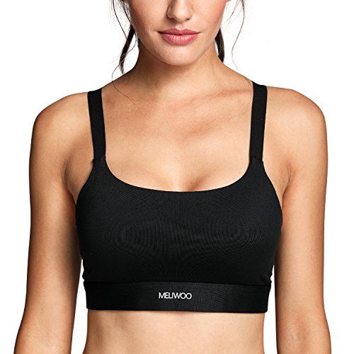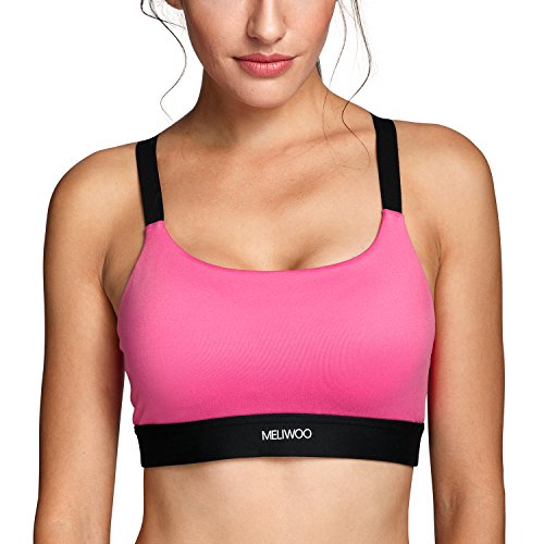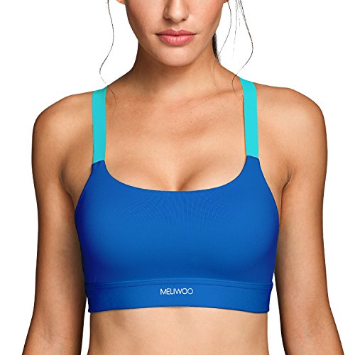 -. Binding : Apparel -. Brand : Meliwoo -. Department : womens -. Feature : Designed for medium-impact activities like cycling, weight training and boxing / Removable pads to provide optional added support / Adjustable cross straps so you can stay focused / Mesh lining to weak moisture and keep you cool / Solid wide band gives you smooth support -. ProductGroup : Apparel -. ProductTypeName : BRA -. Title : Meliwoo Women's Mid Impact Support Cross-Back Workout Fashion Sports Bra Top