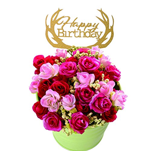 DriewWedding 50PCs Hollow Design Cake Topper Inserted Inserting Card, Glitter Paper Birthday Cake Top Card Decor DIY Party Favor (Gold)