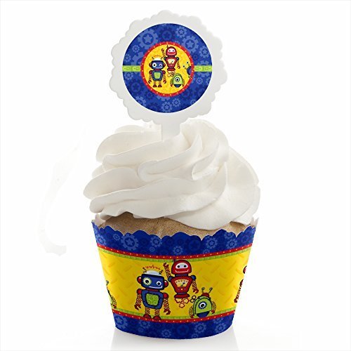 Robots – Cupcake Wrapper & Pick Party Kit - Set of 24
