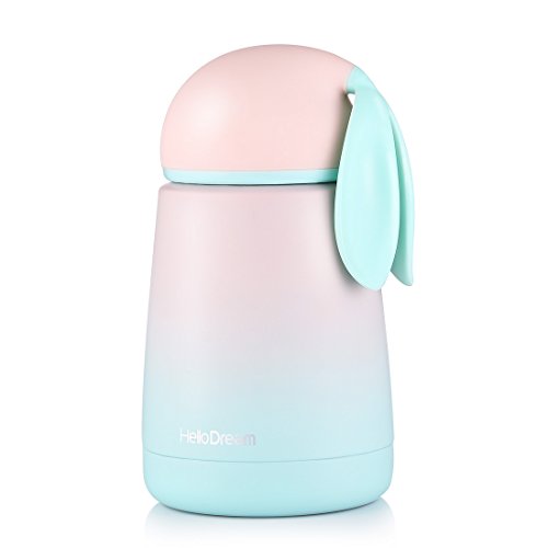 ONEISALL Gradient Rabbit Stainless Steel Travel Mug Thermos,Cute Insulated Water Bottle,Mini Size Coffee Tumbler& Vacuum Flask,Leak-poof Flask For Kids&Adult,300MLPink)