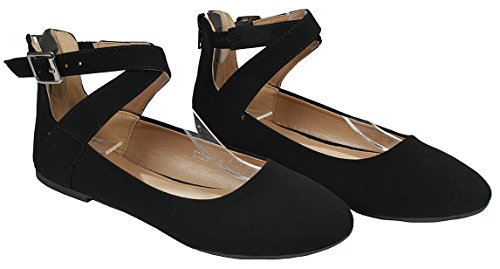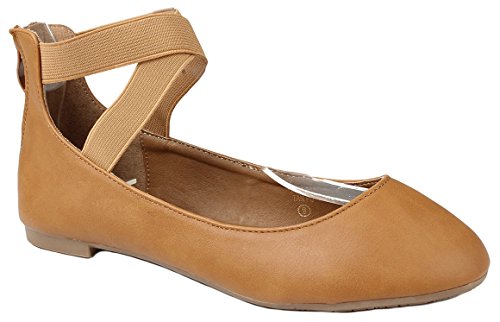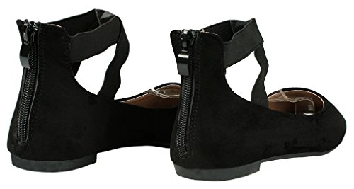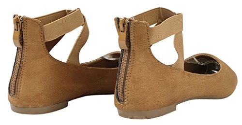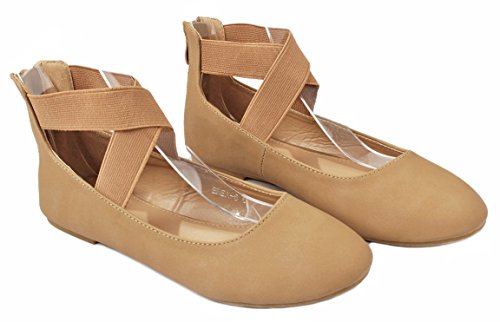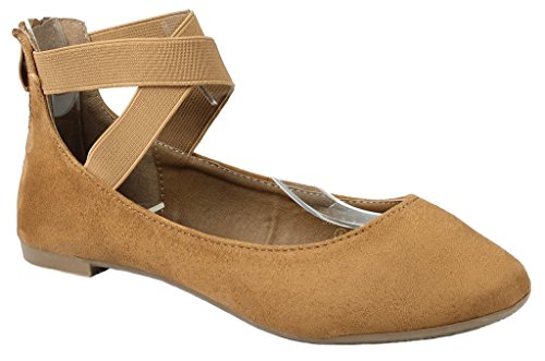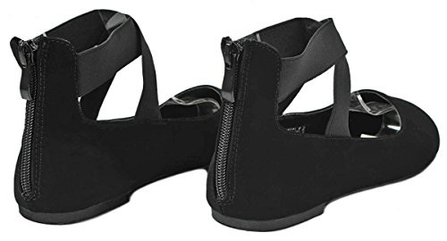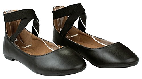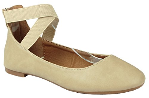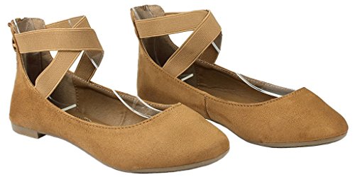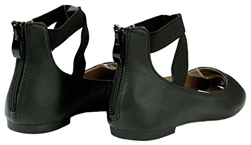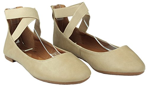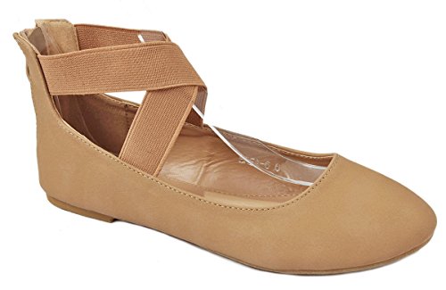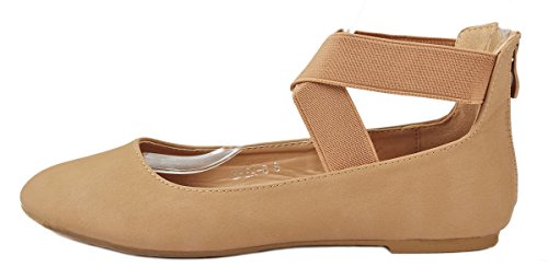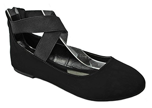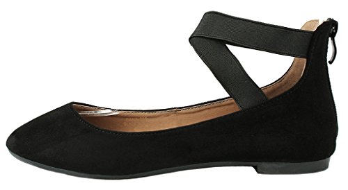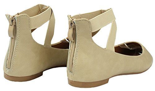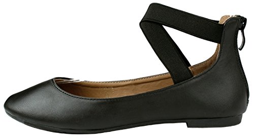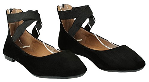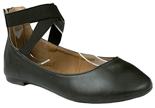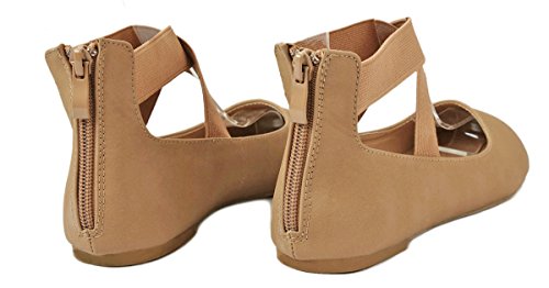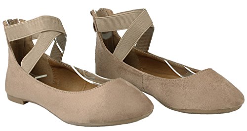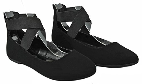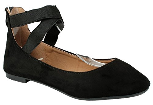 | Women Criss Cross Elastic Strap Round Toe Back Zip Comfort Loafer Ballet Dress Flats |