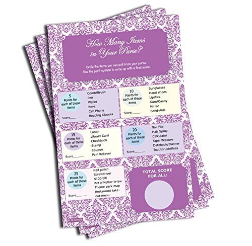 What's In Your Purse Game - Baby Shower - Bridal Shower - Purple Damask (50-sheets)