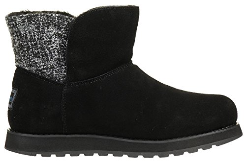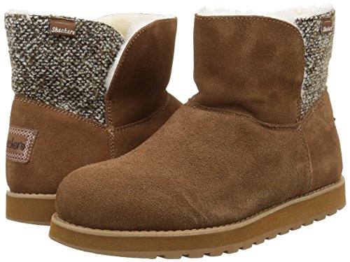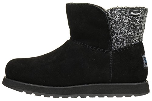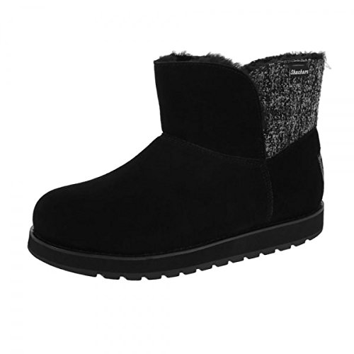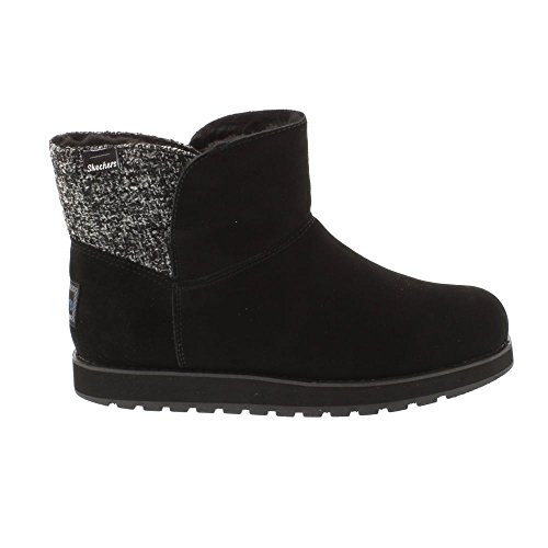 Binding : Apparel Product Description Kicky style and snuggly comfort greet you in the SKECHERS Keepsakes - Peekaboo boot. Soft suede upper in a slip on low mid calf casual cool weather boot with faux fur and tweed fabric detail. Memory Foam insole. For best results, apply a suede waterproofing spray before wearing in wet conditions Slip on casual low mid calf height cool weather boot design; Stitching accents Raised seam detail on front and sides; Heel overlay panel with logo label Woven tweed fabric back shaft panel; Split shaft design for easy slip on and flexible wear Faux fur trim at top and sides of collar; Soft faux fur collar lining Soft fabric boot lining; Memory Foam cushioned comfort insole Shock absorbing midsole; Flexible rubber traction outsole. 0