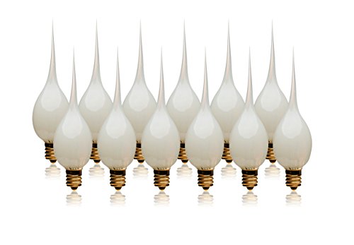 - SILICONE DIPPED CANDLE LIGHT BULBS - 7 watts, E12 candelabra based, dipped in translucent white silicone, 120 volts, your order will include 12 individually boxed light bulbs
