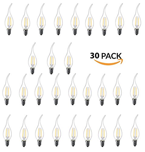 L-HM C35 Flame tip LED light bulb for Vintage Antique Chandelier and Candelabra 2W 2700K E12 base (Pack of 30)
