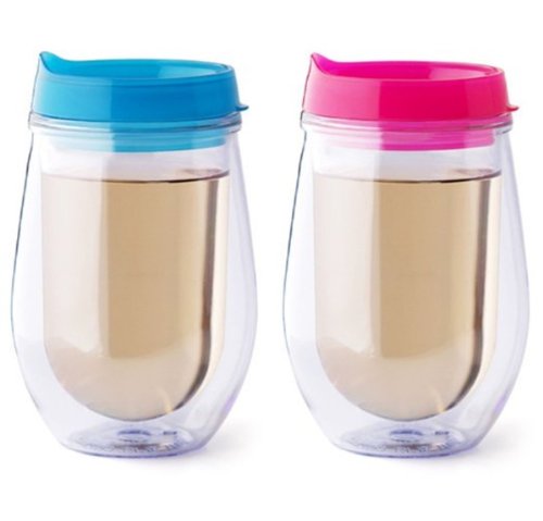 -. Title : Bev2Go Double Wall Insulated 10 oz Tumbler Stemless Wine Glass with Lid 2 Pack (Aqua / Pink)