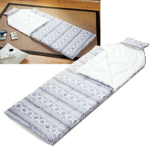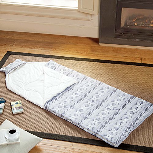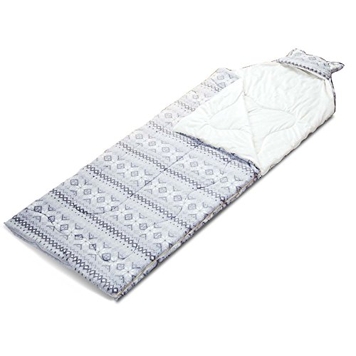 Studio : HowPlumb Publisher : HowPlumb Product Description Head to your next sleepover in style with the this plush grey Fair Isle sleeping bag. It features an all-over fair isle pattern, a cute cat ear hood and a plush ivory interior. It'll also keep you warm through the night with its fuzzy fleece lining and zip enclosure. Measuring 30 inches by 75 inches, this sleeping bag is suitable for both kids and teens. The grey fair Isle sleeping bag comes wrapped in ribbon, making it a great gift for the holiday season. 0