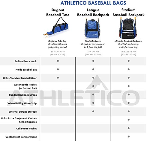 Athletico Youth Baseball Bat Bag 백 팩for야구,소프트볼 티&기기& Gear for키즈&어린이용| Holds Bat,헬멧,구로