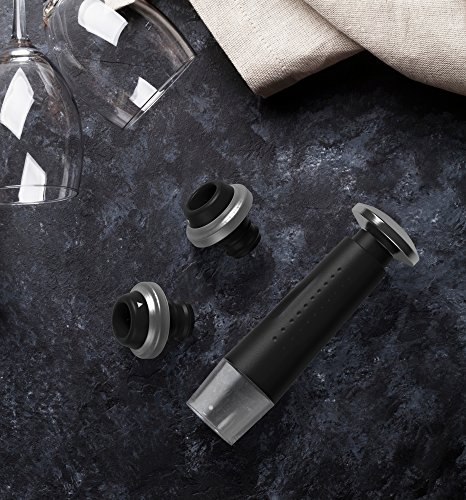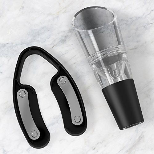 Meet the Vremi Wine O'Clock Kit. Designed for and by winos, this wine lovers gift set contains all the essential tools for enjoying every pour decision to the fullest. Because wine isn't just the nectar of gods-it's a lifestyle. Now go carpe that vinum! Wine O'Clock Kit includes: 1 Electric Wine Opener 1 Charging Base 1 Power Adaptor 1 Wine Bottle Foil Cutter 1 Drip Ring Collar 1 Aerating Wine Pourer 1 Vacuum Pump Wine Preserver 2 Airtight Wine Stoppers Electric Wine Opener Instructions Charge Opener for ~10 hours before operating Remove foil from wine bottle with Foil Cutter Place Opener on top of bottle in upright position Press and hold lower silver button to remove cork When Opener stops turning, lift away from bottle, then press and hold upper silver button to release cork Opens ~30 bottles on single charge Made for standard wine corks To clean, unplug from outlet and wipe with damp cloth; never submerge in water Vacuum Pump Wine Preserver Instructions Insert airtight Stopper into neck of wine bottle, then place Preserver on Stopper and pump up/down to vacuum seal When you feel resistance, stop pumping and remove Preserver from Stopper Swivel ring on Stopper to current date To remove Stopper, press pin to release pressure, then firmly hold bottle and pull out Enjoy wine for an additional 7-10 daysFor full care instructions and safety warnings, always refer to Vremi product box or manual.Feature