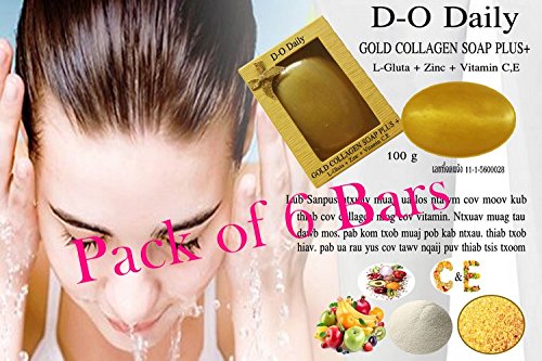 Studio : Thailand Publisher : Thailand Binding : Kitchen Product Description Description : Product Type : Soap Whitening, Collagen And Vitamins Condition : 100% New. Never used. Sealed Package Size : 100 g. or 3.5 Oz./Pc . Quantity : 6 Pcs. Benefits : · Lighten Acne Scar · Whitening · Brightening · Deeply Cleaning · Reduce Black Spot · Skin Firming and Lifting · Softening Smooth · Anti-Wrinkle · Removes Blackheads Ingredients : Sodium Palmate, Sodium Palm Kemelate, Oryza Sativa (Rice) bran oil, Shea Butter Oil,Glycerin, Aqua (water), Cocamidopropyl betaine, Fragrance, Jojoba oil, Ascorbic acid (Vitamin C) Vitamin E, B3, Collagen Powder, Grape seed Extract, Beta-Glucan, L-Glutathione, Zinc, Gold. Direction : Use for cleaning face and body in the morning and evening every day. 0