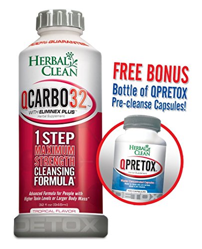 EXTRA STRENGTH: QCarbo32 by Herbal Clean 32 fl. oz. (946 ml) - Super Cleansing Formula for People with Larger Body Weight and Higher Toxin Levels - No Water Needed - Laboratory Tested - Over 1 million people satisfied! - Free QPretox, a $18.75 Value Included with This Duo for Less Than the Price of 1 Regular QCarbo 32